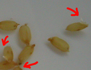 さっそく先週、四郎を水につけておいたら、今朝すこしだけ白い芽のようなものが出ているのを発見!