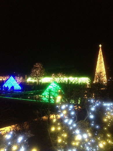 六本木ミッドタウンのイルミネーションも綺麗ですが、ここは敷地が広大なので、見渡す限り・・・山の側面にも巨大壁画のようなイルミネーション。