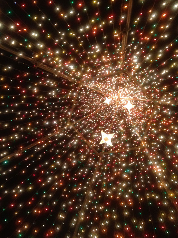 ツリーの中に入って真下からてっぺんを写してみました。