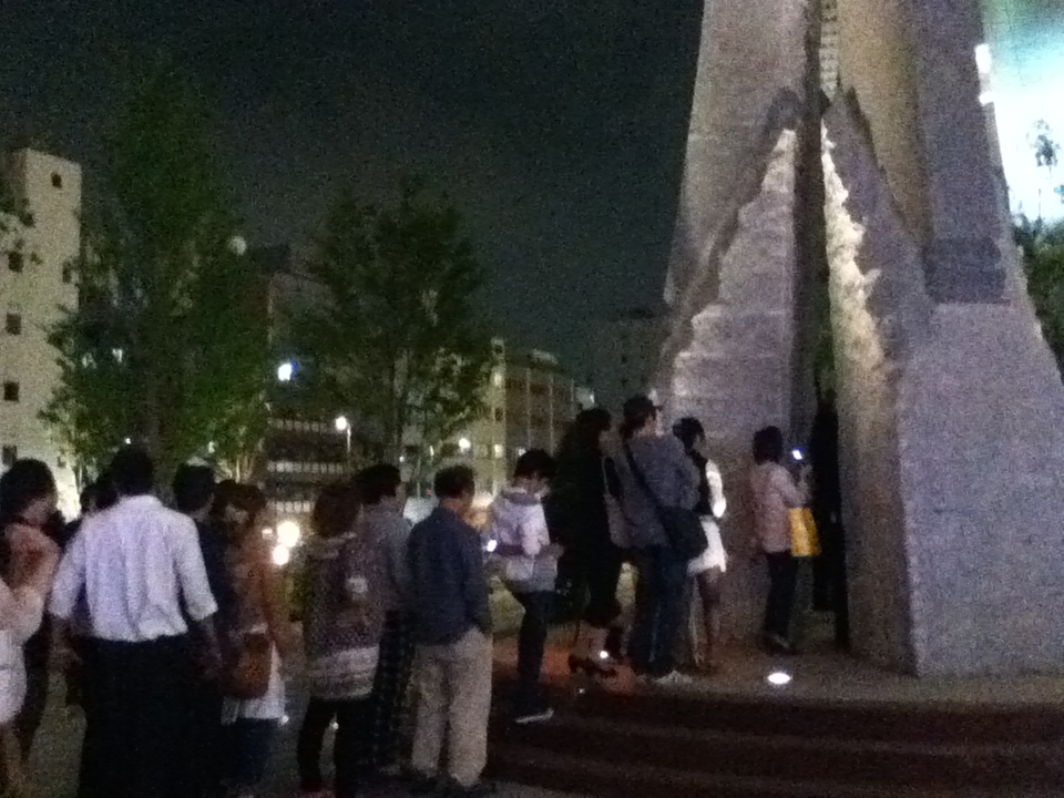 なんだろうと降りていってみると、モニュメントの前に人がたくさん。。