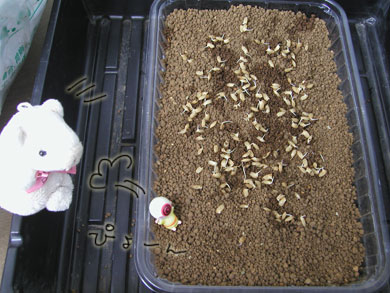 種の上から土を1センチ弱パラパラとかけ、お水をかけたら日があたらないように蓋をします。