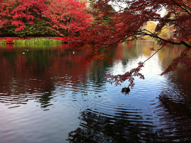 週末、紅葉を見に軽井沢雲場池に行って来ました。