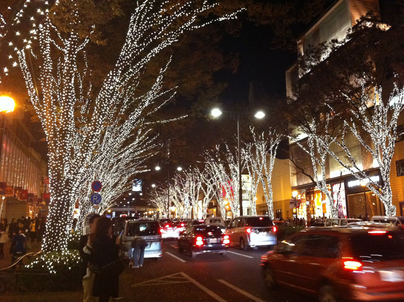 神宮前の交差点から青山通りまでを65万球のLED電球で飾り、日没から21時まで、点灯しているそうです。