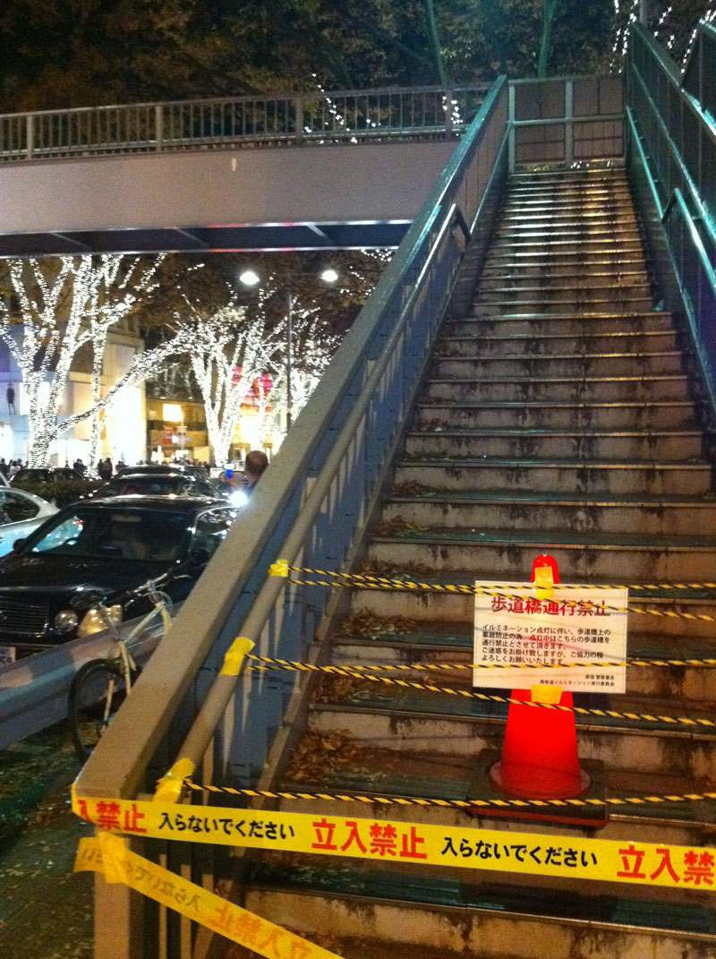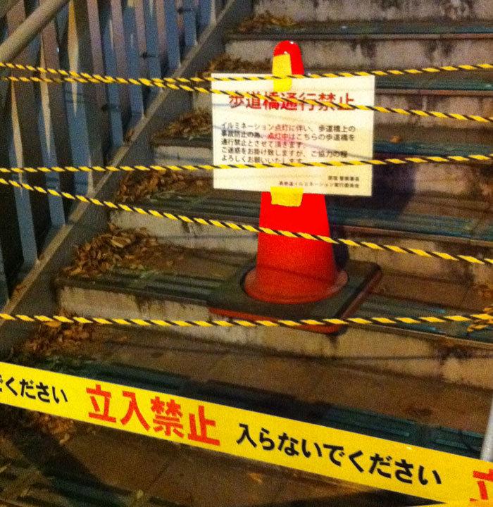 撮影ポイントにぴったりになりそうな歩道橋は、封鎖されていました。