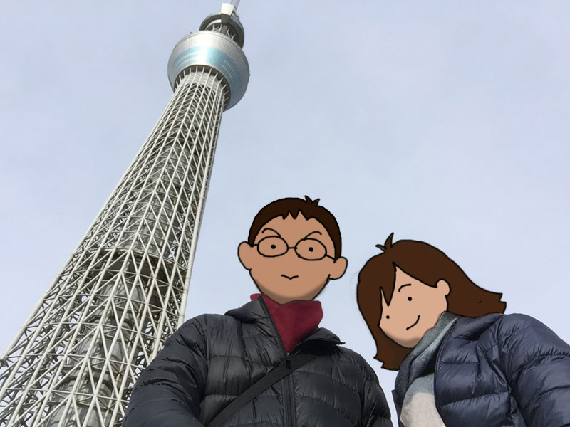 2011年1月、建築途中のスカイツリーにぶったまげる の図です。