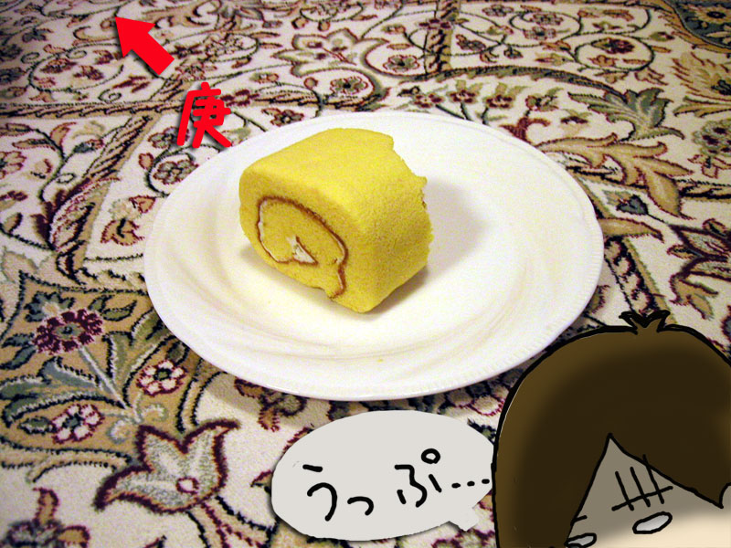 一度お皿においたらロールケーキがよそよそしく敵に見え始める。