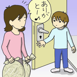 大きなゴミ袋を両手に持ってエレベーターに乗ろうとしたら、6~7才くらいの可愛い男の子がすでに一人で乗っていました。