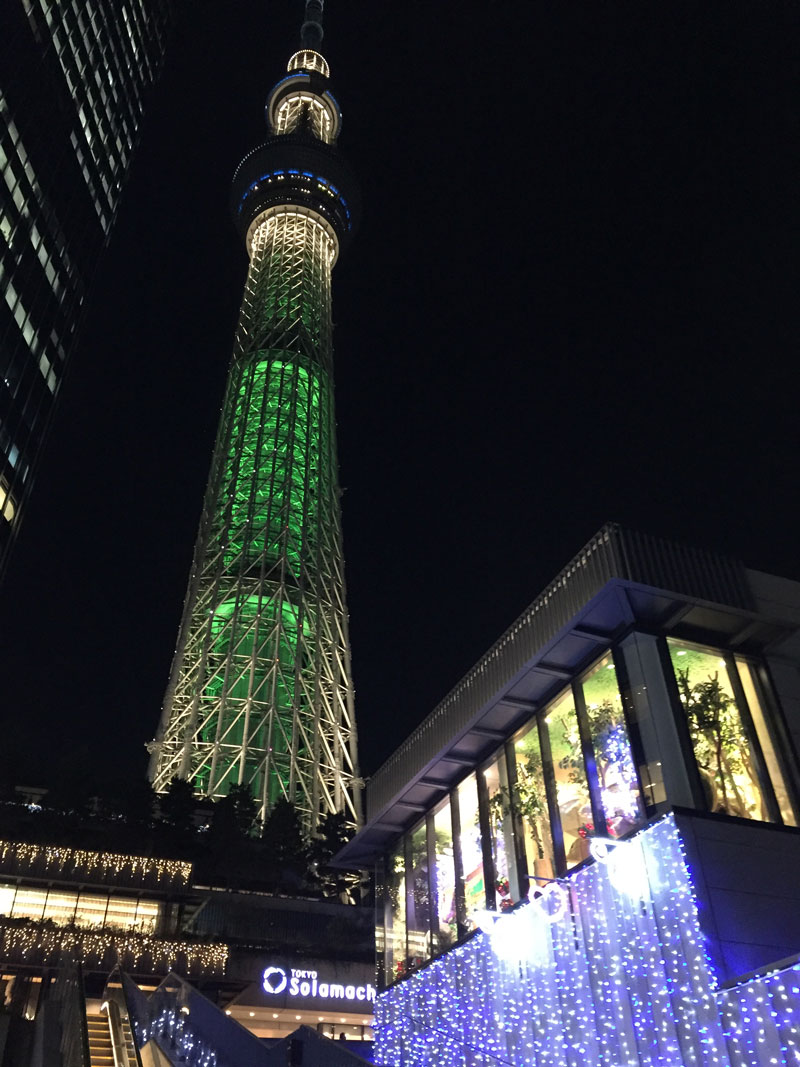 スカイツリーの根元でクリスマスツリー。