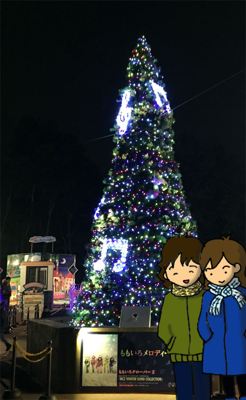何故か、ももいろクローバーZさんの曲が流れるクリスマスツリー。