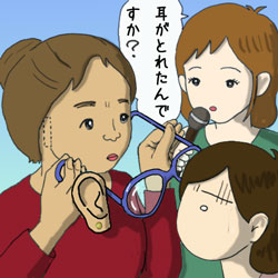 そして、義耳をつけていて、それがメガネと一体化している大変良く出来た義耳なんです。