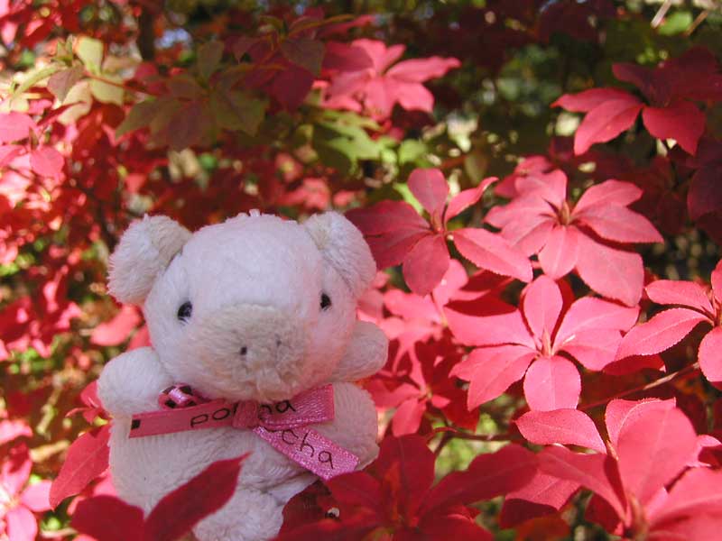 紅葉した葉っぱに囲まれて、頬を染める乙女の図。