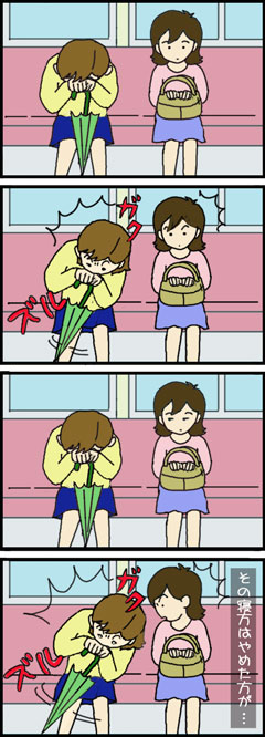 どうしても傘を枕にしたいらしい…。