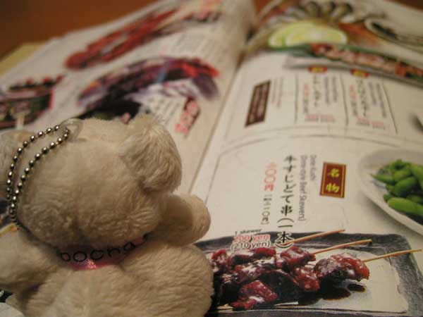 「メニューとにらめっこ」 居酒屋っぽいです。 ふじこちゃん未成年なのに…。