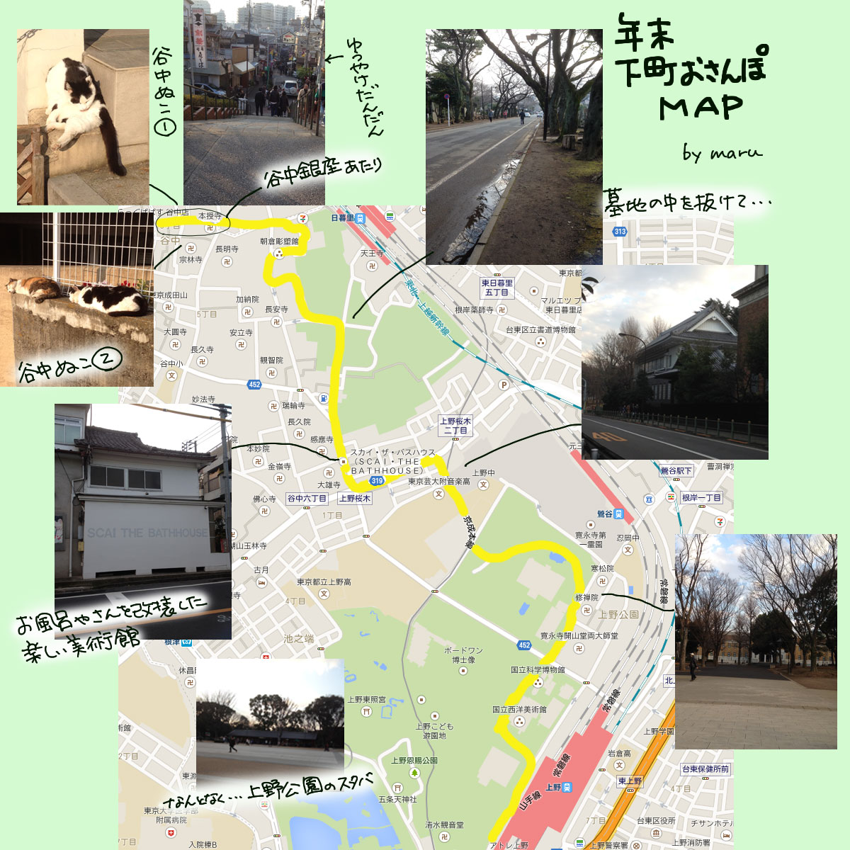 その後、谷中銀座を行ったり来たり、細い路地にも入り込んだりしてたくさん歩いたり、ちょっとお買い物をしたりなどして、楽しい時を過ごし、さてそろそろ・・・と思ったのですが疲れている割にはもう少し歩いてみたくなりこのまま上野駅までいってみようかな・・・ということでプチ散歩となりました。