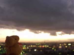 ちょっとの間リビングで横になってうとうとしていたら、 まるこむが 「ふじこちゃんは、maruが寝ている間に大冒険をしたよ。」 というので、びっくりして所在を確認したら、 …ふじこちゃんはいつものPCデスクの上にいたのでほっとしたのですが…、 まるこむの言ったことは嘘じゃなくて、 ふじこちゃんは本当に、 ベランダの手すりの上に乗ったようです。 (でもまるこむが多分片手で押さえてシャッターを押したと思われます。なぜなら写真がぶれてるからね…(笑))