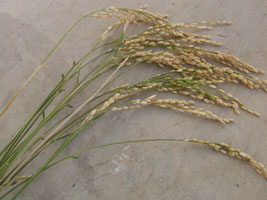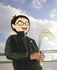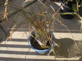 | 今日は四郎の稲刈りです。 落水をしてから10日ほどたち、 四郎はすでにこのような状態になっています。 |