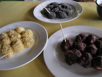 左から、くるみ、ゴマ、あんこ。