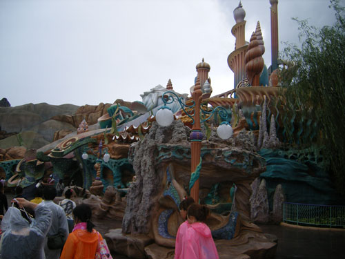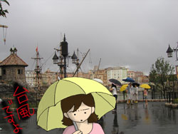 もう、こうなったら濡れついでに…と屋外の360度回転ジェットコースター(レイジング・スピリッツ)にも乗ってしまうことに…。 あとインディ・ジョーンズ・アドベンチャーにも2回、その他乗りたいものは全部乗りつくした頃には昨日から酷使した足腰がすでにグラグラ…(T^T) 空も薄暗くなって、 |