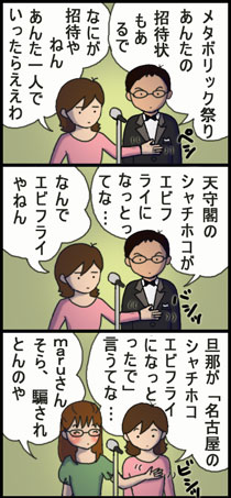 ちょうどまるこむがその頃に名古屋に出張に行き、帰ってきてからその話題になって、その時もまんまとシャチホコネタで騙された…という話を当時の絵日記にしたんですが…。