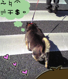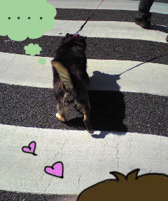 全身から、かったるさをかもし出しながら、ゆっくりとマイペースで歩く黒柴さん。